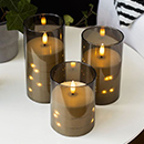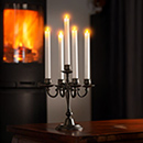 Flammeeffekten i mange modeller giver et naturtro udtryk, som minder om levende stearinlys.